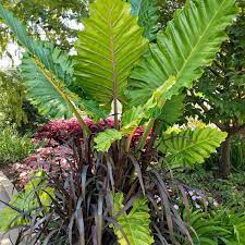 Garden Outdoor Plants Foliage Plants Trees To Plant Shade Plants Plant Leaves Tropical Garden Elephant Ear Plant Colocasia Colocasia Madeira Tropi-Cools Size. Remember the bigger the bulb size bigger the plant and the bigger the leaves. For those who are just getting into houseplants pick up the deep velvet green-leafed Alocasia Regal Shield which can be found at most big box stores or nurseries.
