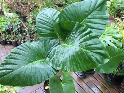 Gigantea or Elephant Ear Plant. Species and cultivars include are varied in colour and size and many make fantastic foliage plants. Elephant Ear plants thrive in moist soil in filtered sunlight.